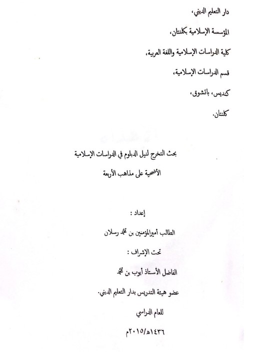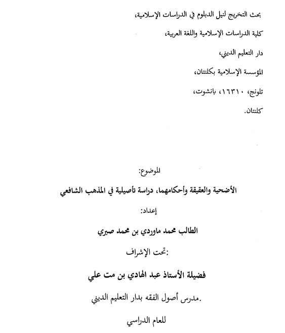 Al-udhiyah wa al-Aqiqah wa Ahkamuhuma, Dirasah Ta''''siliyah fi al-Madhhab al-Shafii