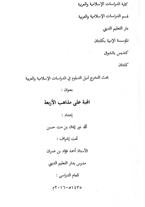 al-Hibah ‘ala Madhahib al-Arba‘ah
