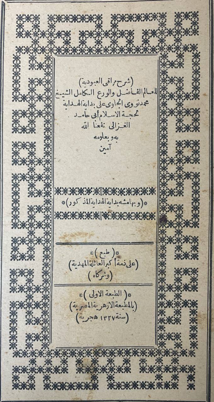 شرح مرقى العبودية Syarah Maraqi al-Ubudiyyah ڤڠارڠ : شيخ محمد النواوي الجاوي Pengarang : Syeikh Muhammad An-Nawawi Al-Jawi ڤنربيت : المطبعة الحميدية المصرية Penerbit : al-Matba''''ah Al-Hamidiyah Al-Misriyah تاهون تربيتن : 1899 Tahun Terbitan : 1899 URL : Akses |